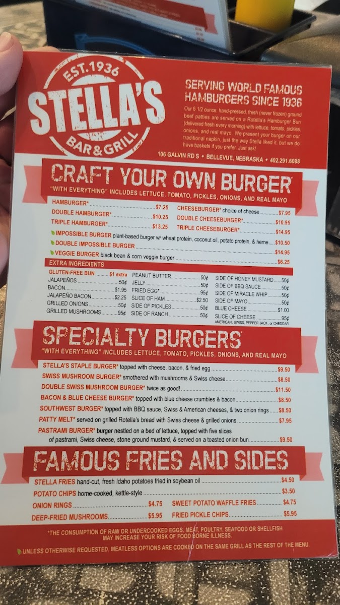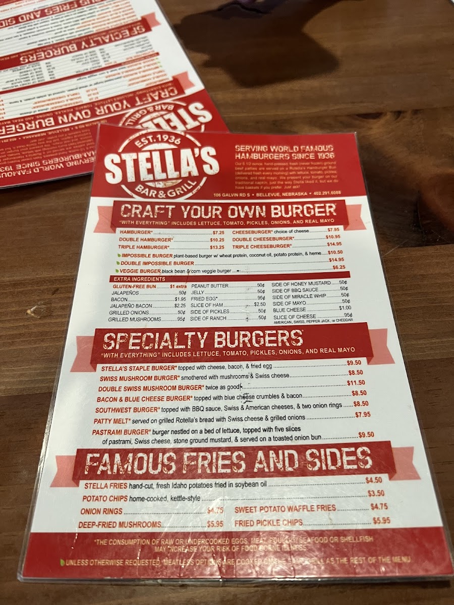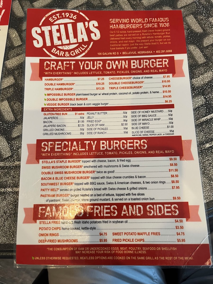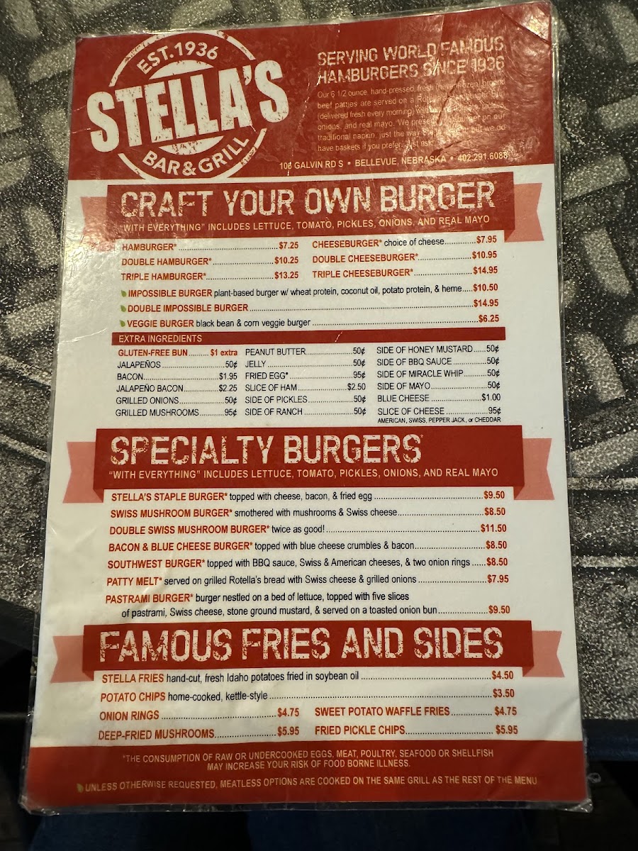 If you're in Bellevue, Nebraska, and craving an unforgettable burger experience, look no further than Stella's Bar & Grill. Nestled at 106 Galvin Rd S, this beloved local gem combines a warm, family-friendly atmosphere with an extensive menu that promises to delight any burger enthusiast.